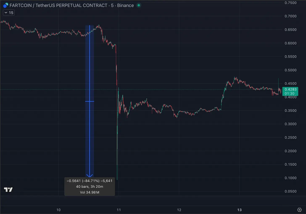 Pasar altcoin mengalami gejolak yang belum pernah terjadi sebelumnya, dengan estimasi likuidasi sebesar $20 miliar hingga $30 miliar pada posisi long. Misalnya, $FARTCOIN jatuh dari $0,6 menjadi $0,1 pada titik terendahnya, sementara $ATOM hampir mencapai nol di pasar spot Binance. Peristiwa ini menandai likuidasi satu hari terbesar untuk altcoin hingga saat ini.