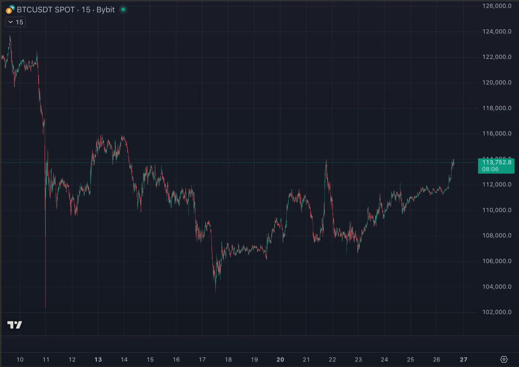 Pergerakan harga Bitcoin ($BTC) sangat fluktuatif sejak penurunan tajam pada 10 Oktober. Strateginya adalah membeli saat pasar terasa oversold dan menjual saat pasar tampak pulih, mengulangi siklus tersebut. Setelah rebound ke $116k pada 13 Oktober, Bitcoin mengalami beberapa hari kelemahan signifikan, mencapai titik terendah di bawah $104k pada Jumat, 17 Oktober. Sejak itu, pergerakan $BTC tidak menentu, naik ke $114k sebelum dengan cepat turun kembali ke $107k dalam hitungan jam. Namun, sejak itu harga terus naik secara bertahap dan kini kembali berada di sekitar $114k, didorong oleh kenaikan pada hari Minggu ini.