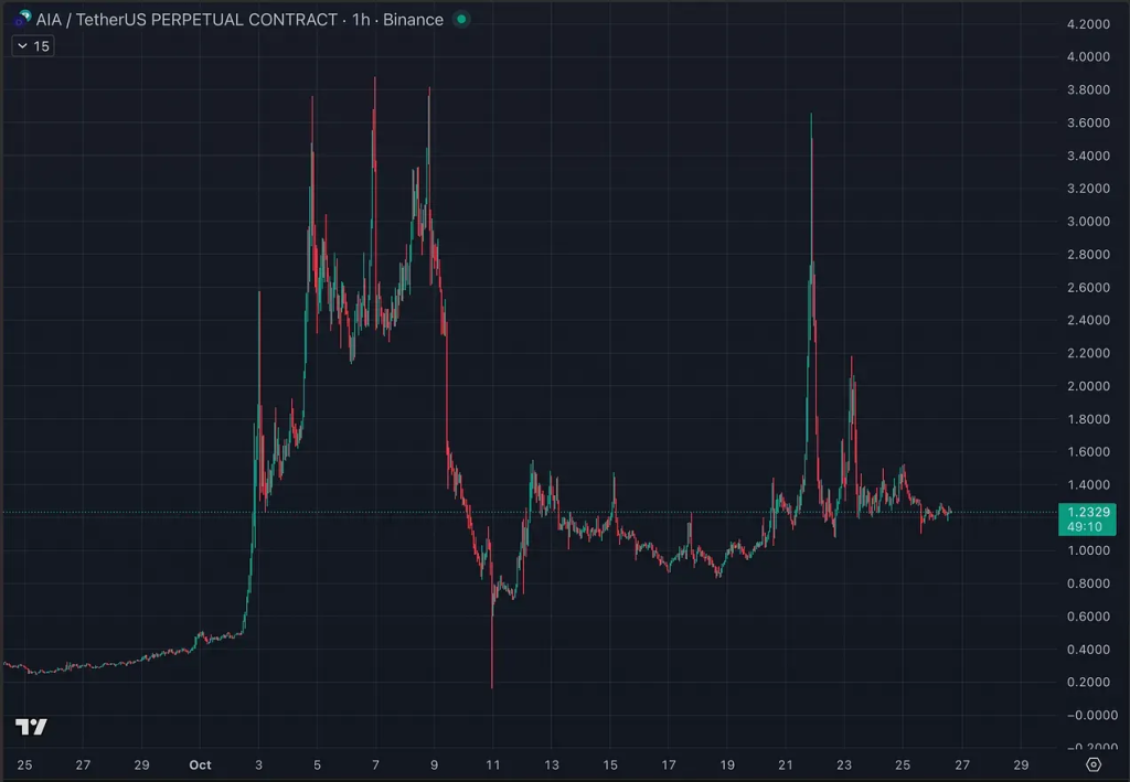 Lihat pula $AIA, yang mengalami lonjakan dan penurunan 3x secara acak (mencapai FDV $4 miliar) dalam satu hari: