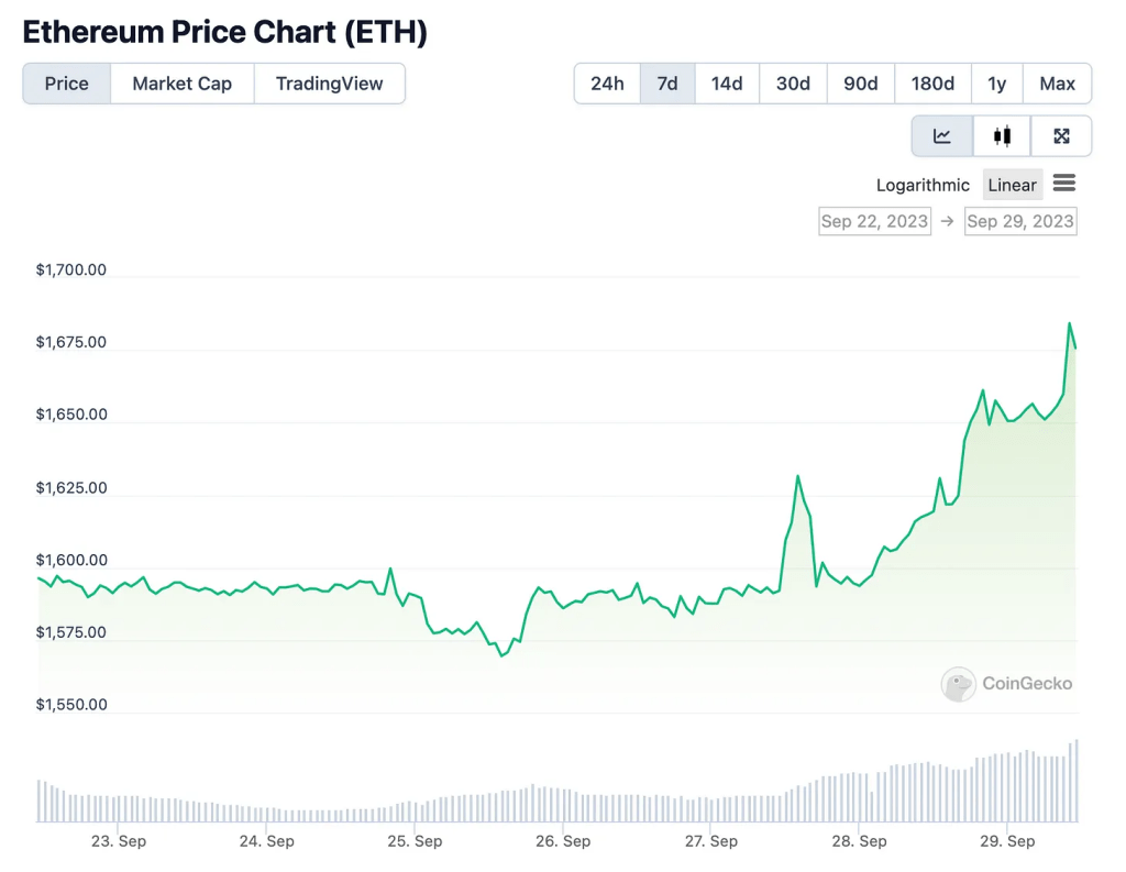 ETF futures kurang penting daripada ETF spot tetapi tetap merupakan berita baik bagi pasar. Sebagian besar (tapi tidak semua) altcoin berada dalam zona hijau minggu ini. Namun, kalian harus menyadari bahwa sebagian besar kenaikan harga ETH dipimpin oleh perdagangan berjangka (perps), yang bukan merupakan pondasi yang paling sehat. Lebih baik jika kenaikan harga dipimpin oleh permintaan spot, yang lebih sesuai dengan permintaan “organik”. Harga saat ini adalah: $27000 untuk $BTC dan $1680 untuk $ETH.
