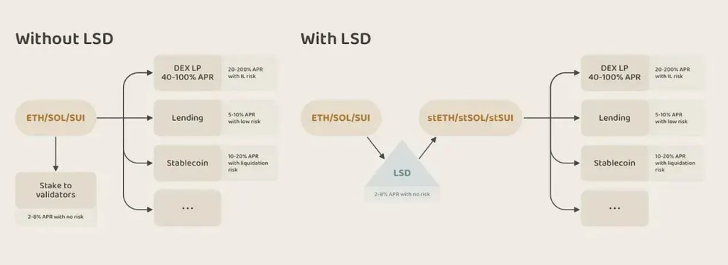 - kemampuan untuk memperoleh hasil DeFi tinggi di samping hadiah staking $SUI.