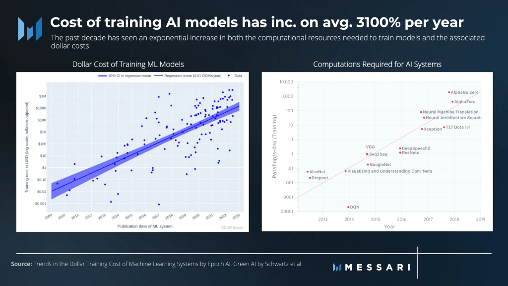 Tren meningkatnya biaya dan permintaan sumber daya yang semakin besar yang dibutuhkan untuk mengembangkan dan melatih sistem AI canggih mengakibatkan terjadinya sentralisasi, di mana hanya entitas dengan anggaran besar yang mampu melakukan riset dan menghasilkan model-model. Namun, beberapa proyek berbasis kripto sedang membangun solusi terdesentralisasi untuk mengatasi masalah ini menggunakan jaringan komputasi terbuka dan kecerdasan mesin.
