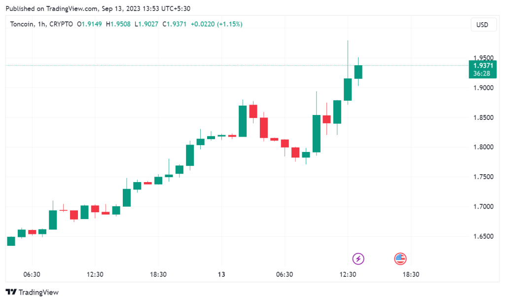 Dompet kripto ini dibangun di atas blockchain The Open Network (TON), dan berita menariknya adalah sekarang tersedia bagi pengguna Telegram yang mencapai 800 juta individu di seluruh dunia. Integrasi dompet TON ke platform Telegram berdampak langsung, menyebabkan harga Toncoin melonjak hampir 7% setelah pengumuman tersebut. Saat artikel ini ditulis, Toncoin berada di posisi ke-9 dalam hal kapitalisasi pasar, bahkan melampaui Solana, seperti yang dilaporkan oleh CoinMarketCap.
